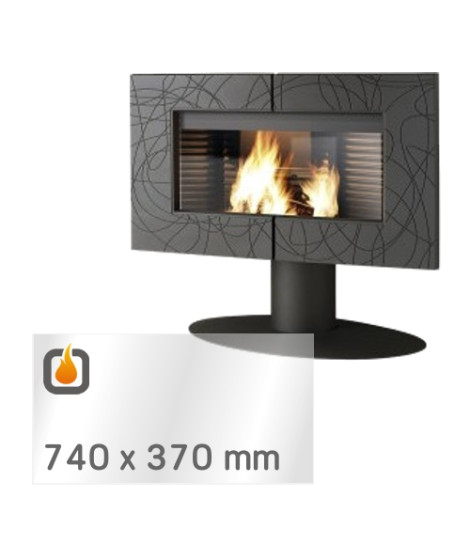 This heat-resistant ceramic glass is custom-cut to fit the INVICTA SYMPHONIA wood-burning fireplace. Dimensions: 740 x 370 x 4 mm.