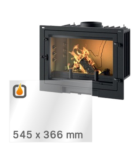 This heat-resistant ceramic glass is custom-cut to fit the INVICTA 700 EOS wood-burning fireplace. Dimensions: 545 x 366 x 4 mm.