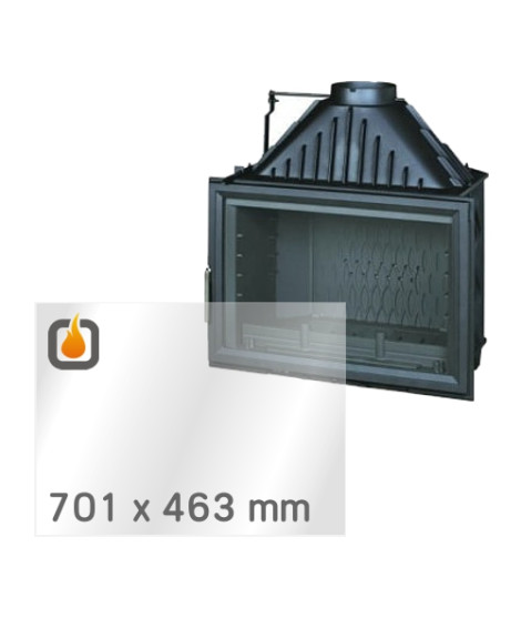 This heat-resistant ceramic glass is custom-cut to fit the INVICTA 800 GRANDE VISION wood-burning fireplace. Dimensions: 701 x 463 x 4 mm.