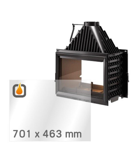 This heat-resistant ceramic glass is custom-cut to fit the INVICTA 800 GRANDE VISION Double Sided wood-burning fireplace. Dimensions: 701 x 463 x 4 mm.