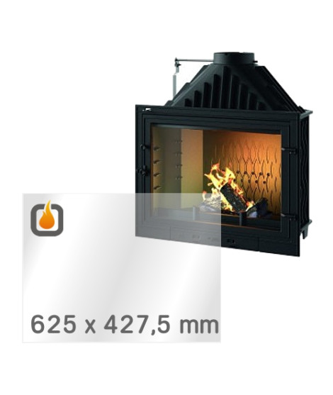 This heat-resistant ceramic glass is custom-cut to fit the INVICTA 800 PRIMO wood-burning fireplace. Dimensions: 625 x 427,5 x 4 mm.
